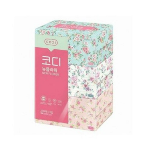 코디 뉴플라워 천연펄프 미용티슈 250매 3입 2팩