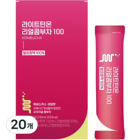 콤부차 라이트턴온 리얼 콤부차 100 히비스커스 라임맛, 20ml, 10개