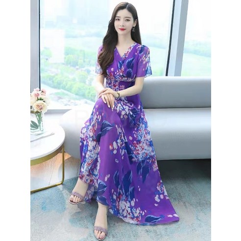 ROGBID 하계 여성복 스웨터 브이넥 반팔 프린트 원피스