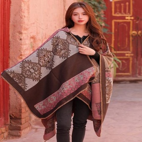 몽골판초 모조 캐시미어 기하학 빈티지 스카프 긴 랩 캐주얼 니트 망토 두꺼운 담요 겨울