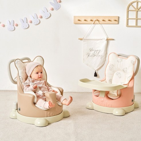 본베베 아기의자 P-Edition+파니 플랫베어 세트 이유식 에시앙범보의자, 베이비코랄_돌핀그레이, 퍼피