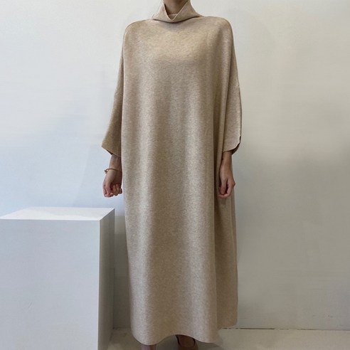 뷔스티에원피스 뷔스티에원피스 가을 겨울 루즈핏 반목 폴라 니트 롱 원피스 빅사이즈 임산부 만삭