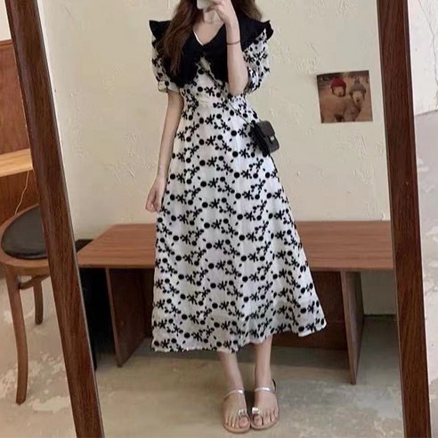 여성용 블랙101 로토 빅카라 플라워 롱원피스 CH-2316206
