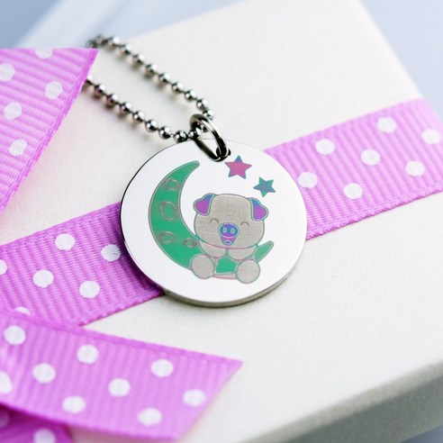 아기돼지 컬러각인 미아방지목걸이, 1번, 40cm
