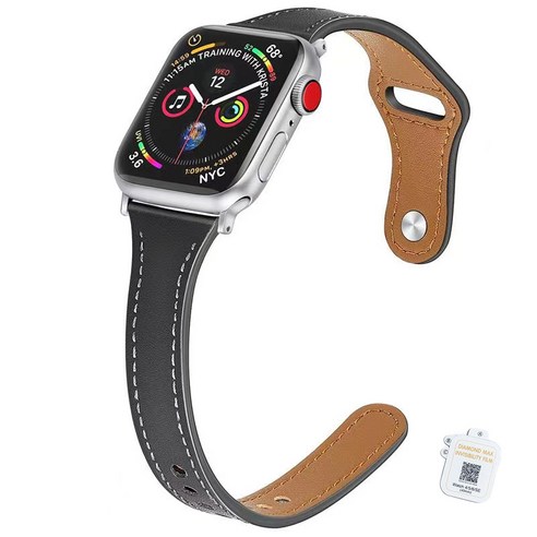 애플워치스트랩 모할랩 애플워치 3/4/5/6/7/8/SE 호환 슬림 단추 가죽 스트랩 + 보호필름 1p 세트, 02블랙, 38mm