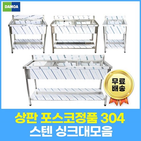 싱크대 업소용 싱크대 상판 포스코(304) 1조 2조 모음 600 900 1200 1500 1800 개수대 세정대, 1800×600×800, 1조우날