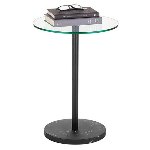 에듀테이블 MDesign 유리 상단/엔드 음료 테이블 거실 기숙사 홈 오피스 및 침실용 작은 모던 라운드 액센트 메탈 나이트 스탠드 가구 22.9cm(9인치) 원형 투명/매트 블랙/화이트