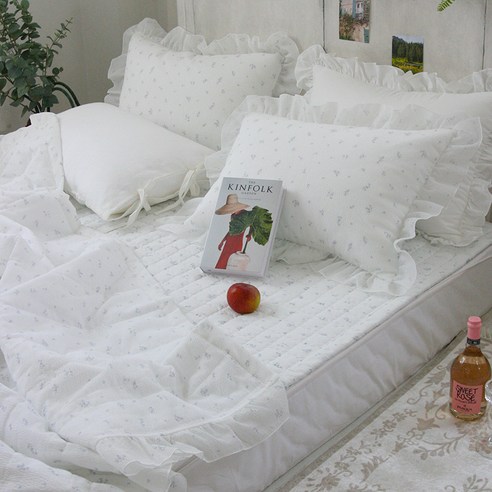 앤코튼 시원한 신소재 잔꽃 시어서커 프릴 여름 차렵 이불커버 세트