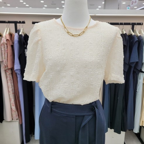 [온앤온] 라운드넥 퍼프소매 주름티블라우스njw3mb62302