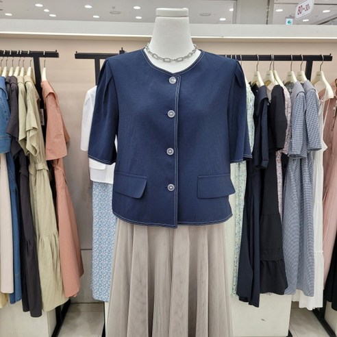 온앤온 퍼프소매 자켓형 노카라블라우스njw3m6012