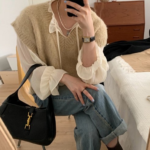 온앤온 언발란스 러플 포인트 블라우스 NW0SB274