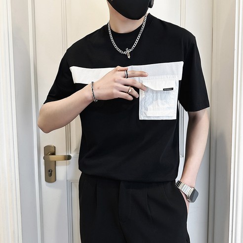 ST11848점주룩여름반팔루즈핏라운드티트렌드티셔츠블랙2