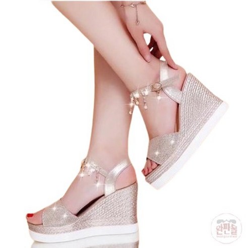 웨지샌들 완판몰 wm695 웨지굽 10cm 비즈 샌들