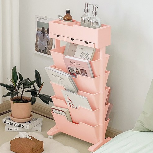 블링몬스터즈 슬림 북선반 트롤리, 5단(화이트)