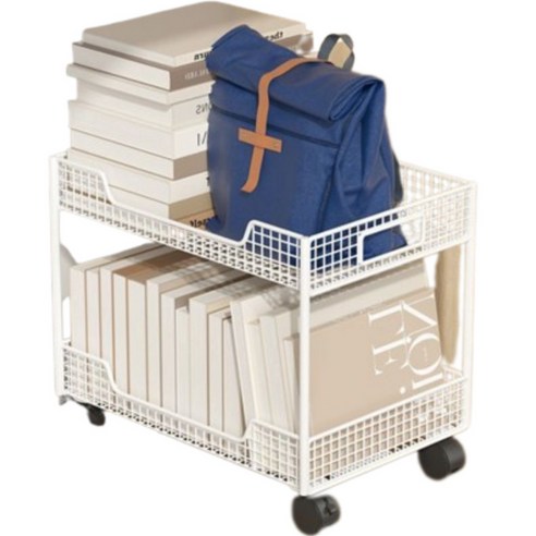 제이밀 데스크 책 수납 2단 바퀴형, 화이트