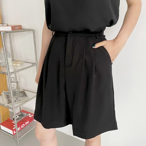 빼빼 여성용 뒷밴딩 린넨 핀턱 4부 반바지