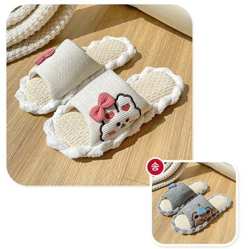 판다슬리퍼 커플 슬리퍼 리넨 코튼 마비 바닥 침묵 미끄럼 방지 홈 실내 봄 가을 새로운 귀여운 슬리퍼 두 쌍, 38/3940/41, A.핑크토끼회색곰